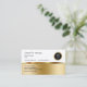Elegantes tarjetas médicas de negocios con un diseño inteligente que incluye un tema auditivo icono del emblema médico del oído y un elemento de diseño de fondo dorado que le confieren un elegante aspecto de gama alta. Diseñado para un consultorio médica, un profesional médico o sanitario o cualquier negocio relacionado con la audición, audífonos o un Médica de oído.