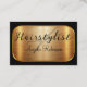 Glitzy elegante peluquero cita tarjetas de negocios creadas con un gráfico de fondo de tono de oro de alta gama y tu nombre y profesión mostrado en elegantes letras caligráficas estilo letras que te presenta como una verdadera peluquería profesional.