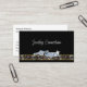 Elegantes tarjetas de visita para Jeweler diseñadas con bandas brillantes de boda de diamantes y una pancarta de piedra con elementos de diseño de tono dorado. Un exclusivo diseño de tarjetas de visita y de llamadas de dos caras que puede personalizar en línea.