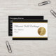 Clásicas tarjetas de negocios de inversión en oro que puede personalizar con un diseño que incluye una moneda de oro, elementos de diseño con aspecto metálico de oro y espacio de texto que puede personalizar en ambos lados de estas tarjetas de presentación inteligentes para temas relacionados con la inversión en oro, productos básicos o planes de retiro.