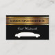 Clásica tarjeta de visita de controlador Limo para chófer profesional con silueta limusina de tono de oro simulada de alta gama y diseño de texto editable que puede personalizar en este diseño inteligente de plantillas de dos caras. Diseñado para un servicio de coches, alquiler de coches, limusina o servicio de taxi.