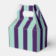 Agregue elegancia a cualquier evento con estas cajas de favores clásicas con voladizo rayado de color púrpura oscuro y azul verde claro. Con rayas audaces y elegantes y un asa resistente, son perfectas para bodas, fiestas o eventos corporativos. Llenas de dulces o pequeños regalos para impresionar a los invitados con un toque profesional y encanto coordinado.