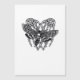 Polilla calavera combinada con manos de esqueleto y corazón en un estilo clásico gótico.