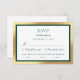 * RELIEVE METALIZADO NON * Completa el conjunto de elegancia con nuestras impresionantes tarjetas RSVP blancas, con el mismo lujoso color verde esmeralda complementado con un falso borde dorado. Tenga en cuenta que este identificador es de color plano y no es un Relieve metalizado real. Estas tarjetas, exuberantes sofisticaciones y encanto, son el acompañamiento perfecto para sus opulentas invitaciones a bodas. Con opciones de personalizable, cada huésped se siente valorado. Puede cambiar fácilmente esta opción a la suya. Combina sin inconvenientes su papelería boda con este exquisito diseño clásico, lo que permite a sus huéspedes disfrutar del RSVP con estilo. Con nuestra conveniente personalización en línea, personaliza sin esfuerzo cada tarjeta RSVP para reflejar su gusto y visión únicos. Elevar cada detalle de su día especial con nuestra colección de oro de color verde esmeralda y falso, asegurando una celebración que irradia lujo y refinamiento.