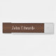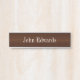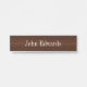 Placa de nombre de personalizable para artesanos, artistas, empresas mostradas con mahagonía oscura como textura e impresión blanca.