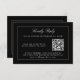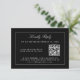 Sencilla y elegante, esta tarjeta RSVP de boda en negro clásico tiene un delgado borde de línea blanca en la parte delantera y trasera y texto en blanco que puede ser editado como desee. Utiliza la moderna tecnología QR Code para permitirle proporcionar un enlace a su sitio web boda para que sus invitados publiquen sus respuestas. El diseño de texto clásico incluye un guión elegante mezclado con un estilo serif intemporal para presentar su información con gusto y sencillez.