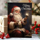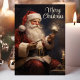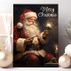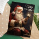 Celebre la magia de la Navidad con esta hermosa tarjeta ilustrada que presenta a un tradicional Santa Claus sosteniendo una vela encendida. El mensaje de "Feliz Navidad" añade un toque atemporal, lo que hace que esta tarjeta sea perfecta para compartir cálidos deseos navideños con amigos y familiares.