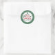 Agregue un detalle festivo divertido y colorido a sus tarjetas de Navidad, invitaciones a fiestas y otra correspondencia durante la temporada navideña con este sello festivo de sobre de dirección de devolución redondo. El diseño presenta un rótulo de caligrafía Feliz Navidad y su dirección de devolución en un fondo verde profundo.
