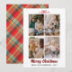 Celebre la temporada con esta tarjeta festiva que muestra un vibrante fondo de tartán de cuadro rojo y la frase "Feliz Navidad" escrita a mano. Personalícela fácilmente con cuatro de sus fotos familiares favoritas y su nombre personalizado.