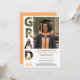 Stylish personalized graduation party invitation for NURSING Graduate, with customizable photo, name, year, university and message on the back. Designed with GRAD photo mask detail and in nurse grad color of apricot. Matching stationery available.