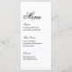 Present your wedding meal with timeless elegance using this classic wedding menu card design. Featuring a graceful script “Menu” header paired with refined typography, this minimalist layout creates a sophisticated presentation that complements formal and romantic wedding décor.