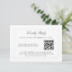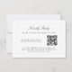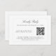 Sencilla y elegante, esta tarjeta RSVP de boda tiene un delgado borde de línea plateada en la parte delantera y trasera y texto que puede editarse según desee. Utiliza la moderna tecnología QR Code para permitirle proporcionar un enlace a su sitio web boda para que sus invitados publiquen sus respuestas. El diseño de texto clásico incluye un guión elegante mezclado con un estilo serif intemporal para presentar su información con gusto y sencillez.