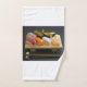 Experience the timeless elegance of Japanese cuisine with this classic sushi towel set. Featuring a beautifully arranged selection of nigiri and gunkan sushi—tuna, salmon, shrimp, sea urchin, ikura, and more—served on a traditional wooden sushi board. The balanced composition and rich colors make this a perfect accent for any kitchen, dining space, or sushi lover's home. A thoughtful gift that blends tradition and style in every fold.