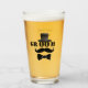 Vidrio Groom con sombrero de punta y bigote con motivos y tiras de esténcil. Ideal para noches de fiesta y bodas. Personalizado con el nombre y la fecha en la parte posterior.