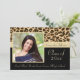 Invitaciones de graduación con foto y estampado de canto marrón dorado y leopardo negro. Cuto, moda, estilo salvaje y femenino para cualquier chica de secundaria o graduada. Muestra tu estilo personal con esta hermosa invitación para la foto o para la fiesta.