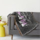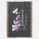 Clásico señor y señora tejven lanzando manta para recién casados. Patrón de diamantes. Romántica idea de regalo de boda para recién casados/recién casados/novios/parejas de esposos. Incluir fecha de boda. Tipografía de escritura elegante. Lavanda de color morado, blanco y gris negro. Decoración de estilo hogareño.