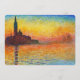 Claude Monet Sunset In Venice Impresionist Art Painting Saint-Georges majeur au crepuscule (ing: Dusk in Venice, San Giorgio Maggiore by Twilight o Sunset in Venice) es un cuadro impresionista de Claude Monet completado entre 1908 y 1912. Forma parte de una serie de vistas de la isla-monasterio de San Giorgio Maggiore, iniciada en 1908 durante su única visita a Venecia. Monet sintió que Venecia era una ciudad "demasiado bella para ser pintada", por lo que puede ser que regresara con muchos cuadros sin terminar a Giverny, su casa en Francia. Sin embargo, ya había abandonado su práctica anterior de pintar de la vida, frente al tema; en cambio, trabajó en las escenas venecianas en casa. Arte por el Movimiento Claude Monet: Impresionismo Hermosa pintura pintada de estilo artístico de gran calidad.