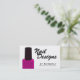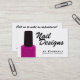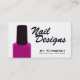 ¡Un negocio acertado comienza con las tarjetas de visita que sorprenden! ¿Es usted técnico del clavo? ¡Estas tarjetas se pueden modificar para requisitos particulares con su nombre y número de teléfono! Si usted quisiera cambiar o añadir alguna otra información sobre esta tarjeta, tal como el "clavo diseña" el logotipo o su prensa de la dirección el "personalizar él" botón y cambio según lo necesitado. Características del diseño una botella rosada de pulimento de uña con un fondo blanco limpio y de sitio para su información personal.
