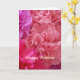 Los claveles rosados saludan al beneficiario con deseos del feliz cumpleaños. El interior de la escritura y del verso relaciona bendiciones.