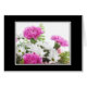 Ofreciendo claveles rosados y las margaritas blancas rodeados por una frontera negra. Fotografía original de Janet Hastings 2010.