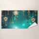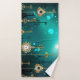 El oro, las llaves antiguas con engranajes y diales cuelgan de las cadenas de oro sobre un fondo verde luminoso.