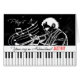 Celebra tu amor por la música enviando tarjetas para el Día Internacional de Jazz que se celebra el 30 de abril de cada año. Este diseño cuenta con un teclado de piano en la parte inferior con una silueta de músicos de jazz en blanco con notas musicales giratorias que se desvanecen en el fondo.