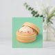This adorable design features a happy little steamed dumpling with a sweet, smiling face and rosy cheeks. Rendered in a high-quality 3D clay style, the dumpling has a smooth, doughy texture and sits snugly inside a light brown bamboo steamer basket with an open lid. Set against a clean, solid mint green background, the minimalist and "kawaii" aesthetic creates a charming food-themed scene that is perfect for anyone who loves dim sum or cute character art. This cheerful dumpling postcard is a wonderful choice for sending a "dim sum-body loves you" note or a playful greeting to a foodie friend. You might choose to use this cute food card for a Lunar New Year celebration invitation or to announce a fun dinner party with family members. It also makes a precious decorative piece for a kitchen wall or a bright addition to a recipe book as a small token of happiness. This versatile design is also an excellent choice for Asian cuisine event announcements, cooking class invites, or as a heartwarming way to share a short message of joy for any situation or event.