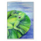 Una rana (símbolo de limpieza, reabastecimiento, adaptación y buena fortuna) se sienta en una almohadilla de lirio y mira al espectador.