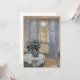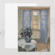 Stue Med Lyseblå Gardiner og Blå Clematis, Sala con cortinas azul claro y clemátide azul (1913) de Anna Ancher es una pintura de arte fino del impresionismo antiguo. Unas cortinas azules transparentes cuelgan sobre la ventana con cálida luz solar de verano que entra a raudales. Una planta de flores de clemátide del jardín está en una mesa en el estudio del artista.