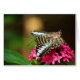 Fotografía de una mariposa de Clipper en un jardín con flores en forma de estrella rosa.