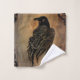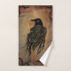 Raven sobre el fondo de las baldosas de piedra. Los engranajes del reloj alrededor del borde.
