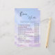 Infundir festividades de novias con ligereza usando las extravagantes cartas Cloud 9 Over o Under! Cada una de las postres de una tarjeta embellecida en la nube plantea preguntas numéricas desenfadadas para que los invitados reflexionen: ¿Las fotos de despido se llevarán a cabo durante 30 minutos o menos? ¿El número de canciones de baile que se tocan es de más o menos 3? Despliegue estas cartas provocando una animada especulación y risitas. Conéctate mientras los motivos de la nube elevan la mentalidad alegre de cualquier novia. Las elegantes tarjetas blancas se centran en la diversión sin comprometer ninguna estética de diseño. No pases por alto esta actividad que da un tono jovial celebrando los sueños del amor que se hacen realidad en el cielo. Dejar a los invitados sonreír y rememorar las predicciones entusiastas con este juego de números optimistas honrando la felicidad de la futura novia. Ideal para las duchas con el tema "Nubes 9".