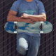 Un skateboard con un diseño de cielo nublado. Diseñado por © KarsKreations.