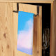 Toalla de cocina con cielo azul y nubes rosadas sobre ella