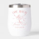 Celebra tu despedida de soltera con estos vasos térmicos para vino de moda y elegantes. Este vaso de vino para despedida de soltera con tema de "club social" de martini en blanco y negro es personalizable con el nombre del destinatario.