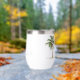 This cute stemless wine tumbler features a tropical palm tree on each side. Personalize with your choice of name and special text on the front and back.