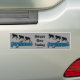 Ahora tengo 2 pegatinas que no puedo utilizar en mi coche. Bueno, una de ellas toda arrugada de intentar pegarla en la carrocería. Buena impresión. Es igual a las fotos.