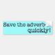 ¡Ahorre el adverbio, rápidamente! Pegatina para el parachoques