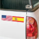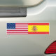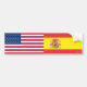 Americano y español señala a la pegatina para el parachoques por medio de una bandera