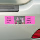 Pegatina para el parachoques, fondo rosado con la foto de los pies en zapatos de bebé rosados, palabras del bebé: "Jesús me amó… porqué no lo hizo usted?"