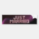 La pegatina para el parachoques adaptable para los pares recientemente casados con brillar "acaba de casar" diseño del texto en rosa joya-como letras llamativas y fondo púrpura sedoso.