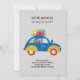 Invitación de movimiento con dirección nueva. Un coche divertido y de colores vivos con maletas y un mensaje de 'Estamos en movimiento'. Las plantillas están configuradas para que pueda añadir sus propios detalles. Si desea cambiar el color o estilo del tipo de letra, haga clic en personalizar más adelante al final de la plantilla. También puede cambiar el color de fondo que es gris en este diseño. La parte posterior de la tarjeta es sencilla para que usted escriba su propio mensaje.