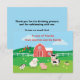 Tarjeta de agradecimiento para fiesta de cumpleaños con tema de granja colorida y linda. Este diseño unisex presenta una escena apta para niños con un granero y personajes lindos, incluyendo una vaca, cordero, cerdo, gallina, gallo y pollitos.