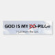 Este pegatina es un despegue en esos "XYZ es pegatinas de mi copiloto", que se basa sobre mi fe y creencia que dios dirige mis acciones, y que tengo poco a ningún control sobre la mayoría de las cosas, incluso cuando siento como quiero estar en control. Mientras que puedo hacer mi pequeña parte, él está corriendo la demostración, no yo. Destaca el hecho de que I, puede hacer de hecho muy poco para tener control durante mi vida, y que dios está verdad en el asiento de conductor.
