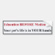 Usted puede ayudar a proteger a mascotas recordando a dueños del mascota sobre los efectos secundarios y los riesgos potenciales de medicaciones veterinarias con esta pegatina para el parachoques.