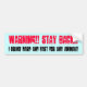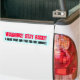 Una pegatina para el parachoques que advierte a la gente que usted parará si hay un animal en el camino cerca de usted. La advertencia y la estancia rojas detrás, ennegrecen otras palabras.