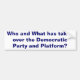 En un fondo azul marino, letras blancas "quién y qué ha asumido el control el fiesta Democratic y la plataforma?"
