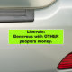 Liberales… Abundante con la otra pegatina para el parachoques del dinero de la gente. ¡Esté por favor seguro de visitar nuestra tienda de Zazzle para artículos anti-más liberales! Si usted quiere uno de nuestros diseños en un diverso estilo o tipo de artículo, por favor email nosotros en admin@juliahutchins.com.