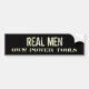 ¡Nuestros HOMBRES REALES poseen las herramientas eléctricas que la pegatina para el parachoques es los hombres de hombres del regalo perfecto! Texto del grunge de las características del diseño en blanco contra fondo oscuro. ¡Perfeccione para el día o la cualquier ocasión de padre! Descuentos por volumen disponibles.
