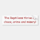 " Los Reptilians prosperan en caos, crimen y miseria." Pegatina para el parachoques